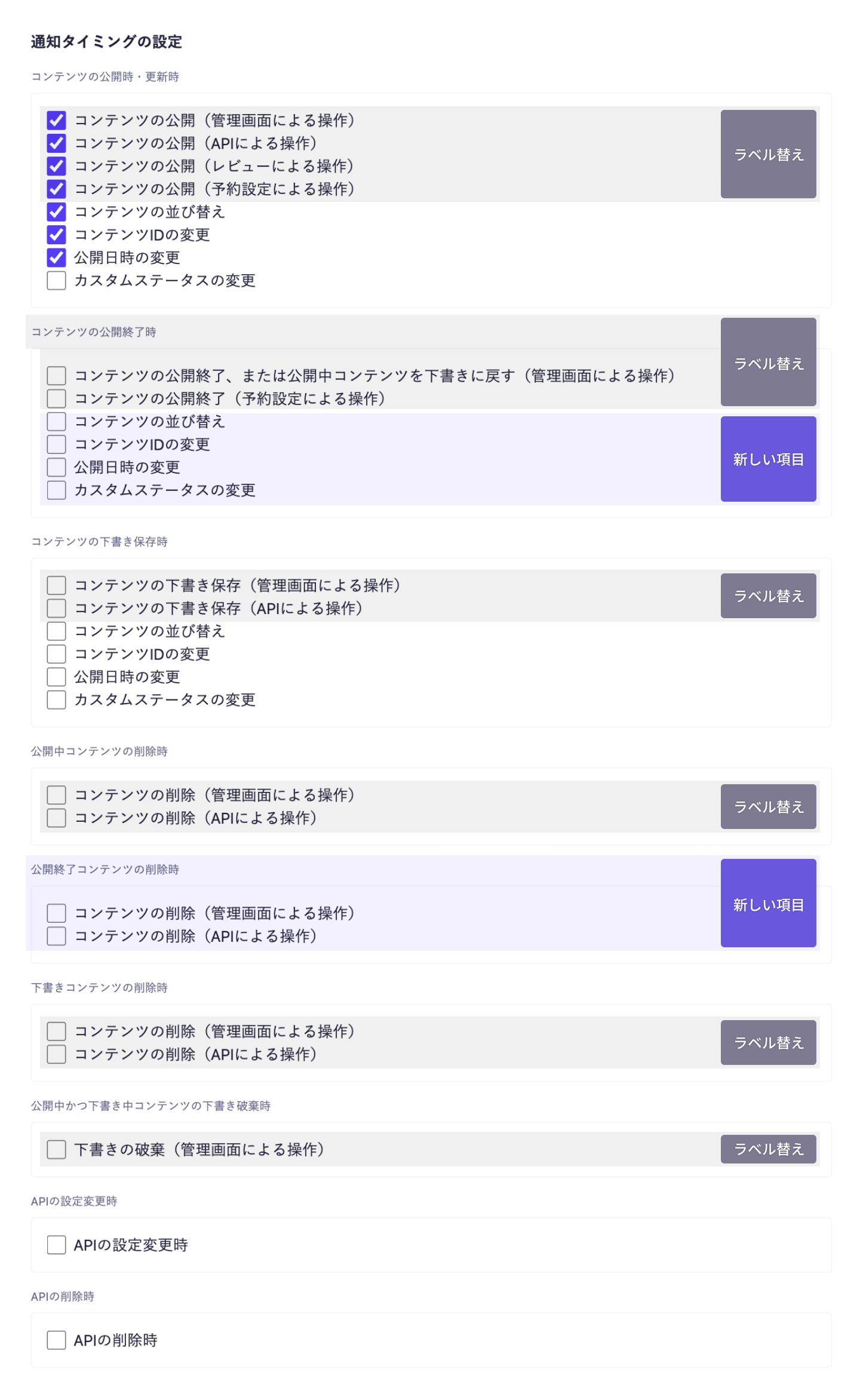 この度、コンテンツのWebhook設定で公開終了したコンテンツに関する通知のタイミングが追加されました。