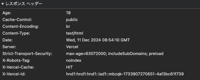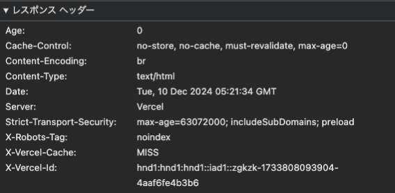 公開中の記事と同様にレスポンスヘッダーに含まれるx-vercel-cacheの値を確認してみましょう。