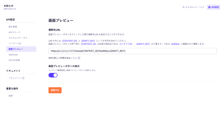 動的ルーティングにプレビュー機能も持たせるために遷移先URLはhttps://yourdomain.com/news/{CONTENT_ID}?draftKey={DRAFT_KEY}とします。yourdomain.comの部分は環境に合わせて変更してください。