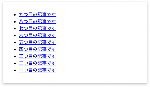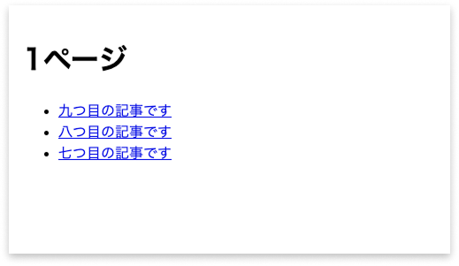 各ページにはそれぞれ記事タイトルを3件ずつ表示するようにし、タイトルには詳細ページへのリンクを設定します。