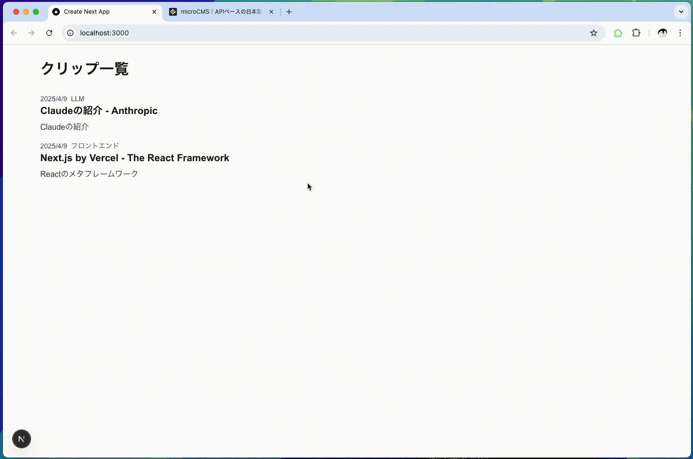 microCMSからデータを取得し表示するフロント部分は、一般的なブログの実装と同じイメージで進められるため、詳細は割愛します。