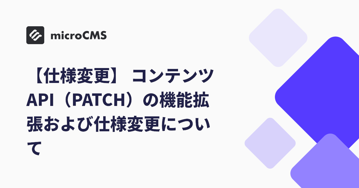 この度、2026/2/9(月)のアップデートにて、コンテンツAPIのPATCHリクエストに関する機能拡張および一部の挙動を変更いたします。