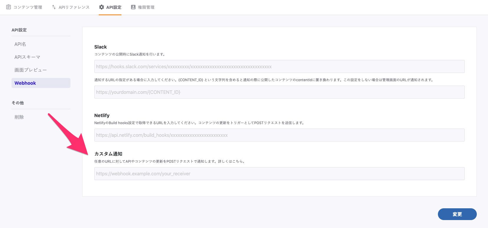 カスタム通知とはAPIやコンテンツの更新時に任意のサーバにその情報を伝える機能です。