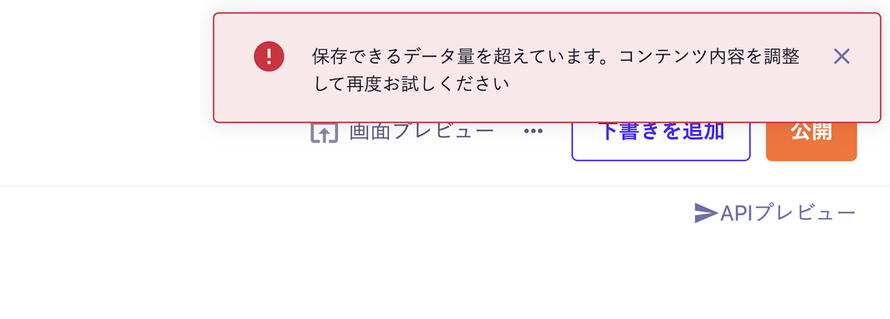 また、それと併せてコンテンツサイズ上限が原因で保存できない時のエラーメッセージも改善されています。