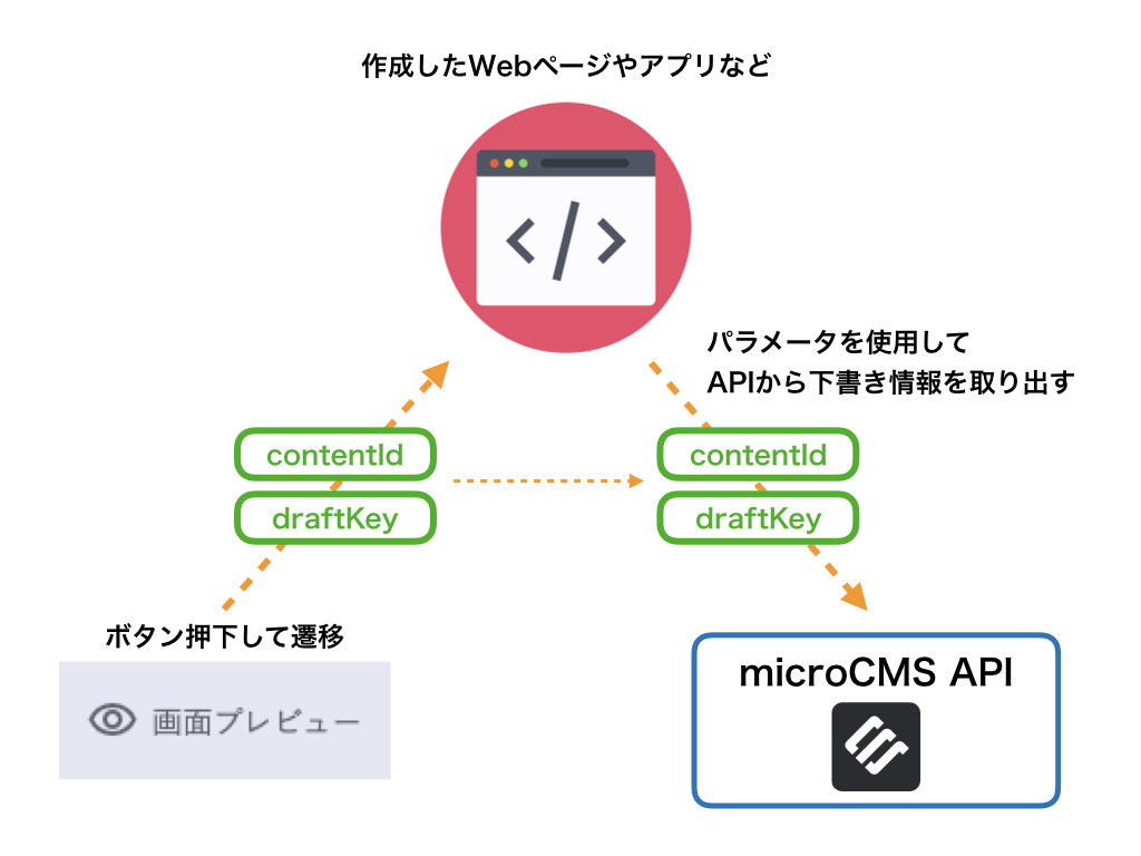 受け取ったWebページやアプリケーションは必要に応じてその値を保持し、microCMSのAPIを呼び出す際に利用することで下書き中コンテンツを取得して画面表示ができます。