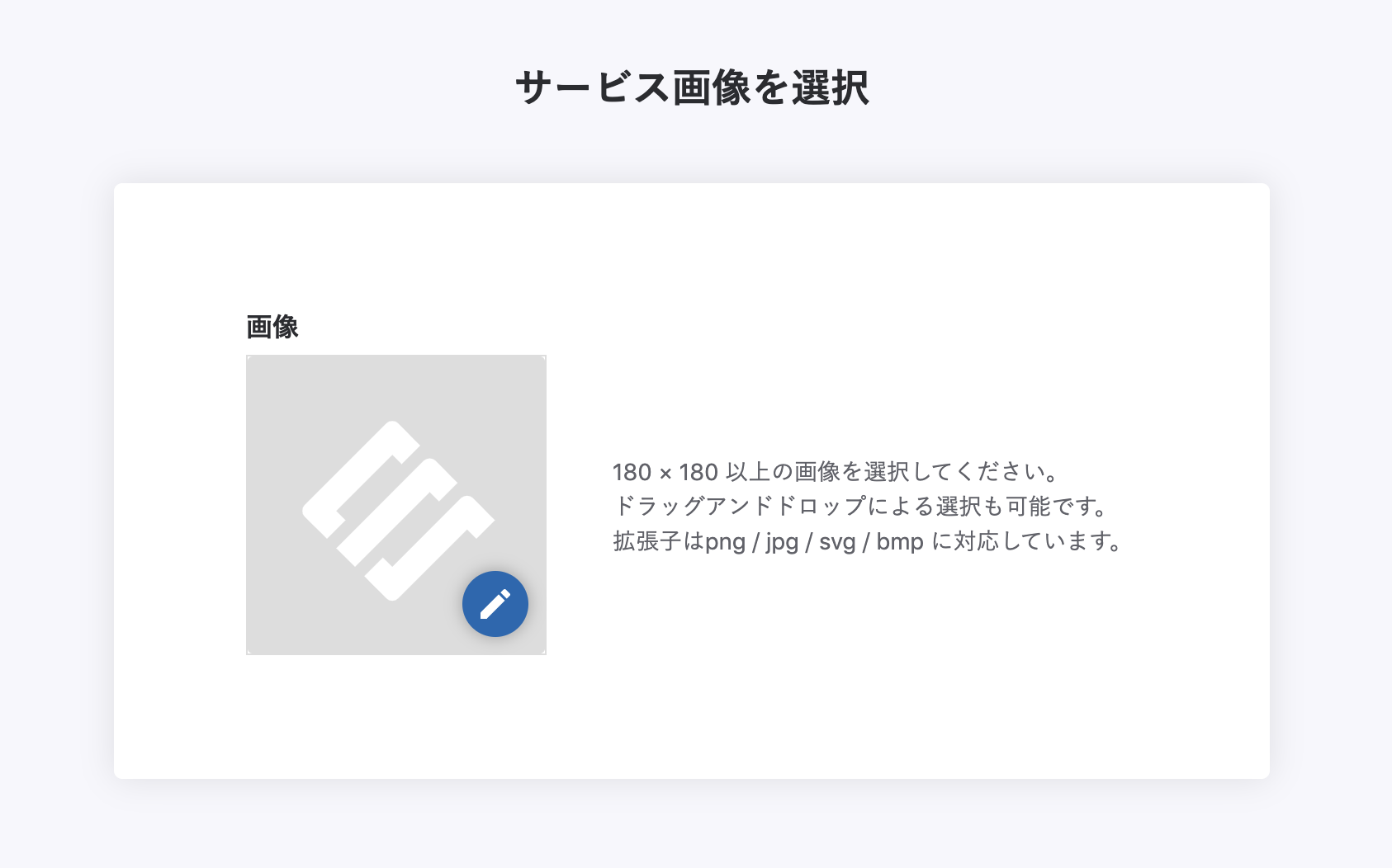 サービス作成時にサービス用の画像を設定しますが、その際に画像枠に対してドラッグ&ドロップをすると自動的にアップロードされます。