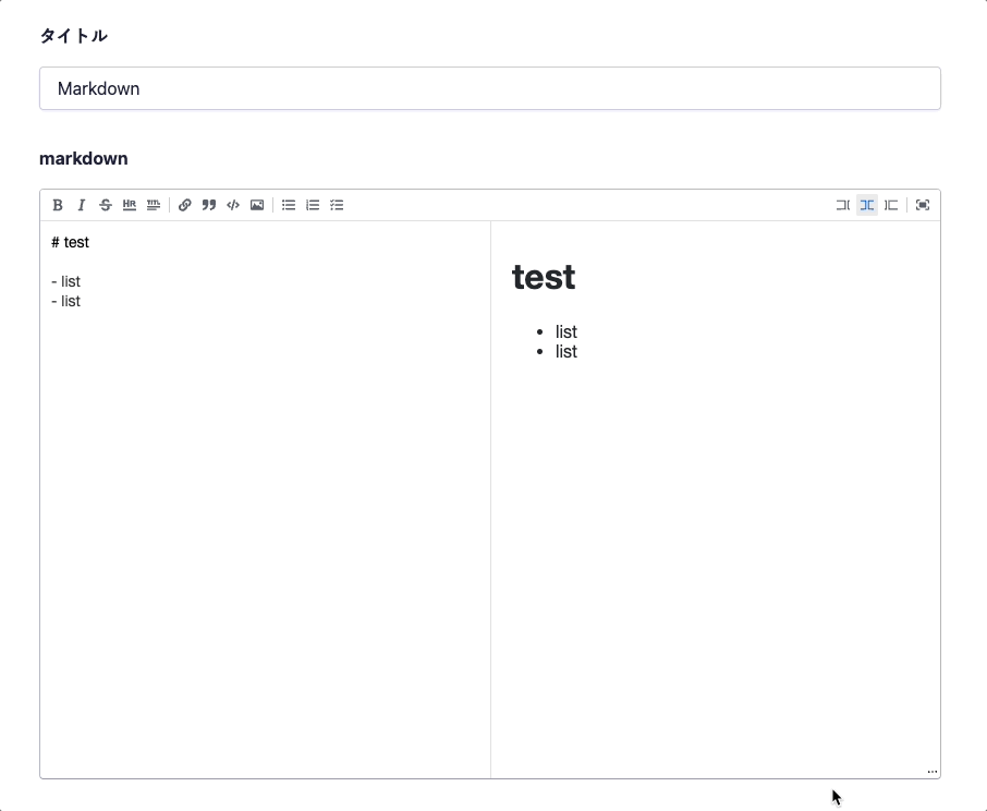 $ npm run dev開発サーバーが問題なく起動できたらmicroCMSからコンテンツ投稿画面を開いて確認してみましょう。左側にMarkdown記法で記載すると右側にリアルタイムでプレビューが表示されるはずです。