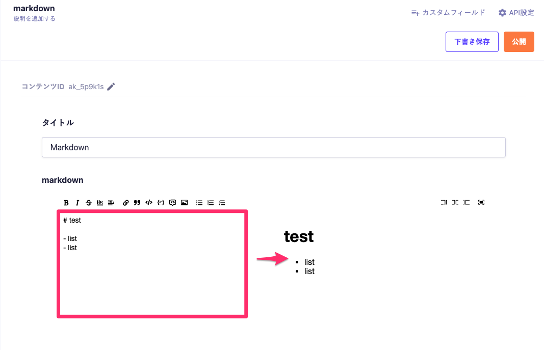 これでMarkdownで投稿、編集ができるようになりました。API取得側でもそのままMarkdownのデータが取得できるので好きなようにスタイルを調整して利用してみてください。