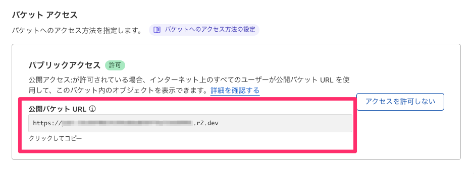 アクセスを許可を押下すると公開バケットURLを取得することができます。