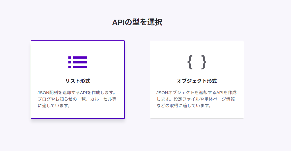 次に、microCMSでAPIを作成していきます。手順は下記に用意しました。詳細については、microCMSのドキュメントを参照してください。