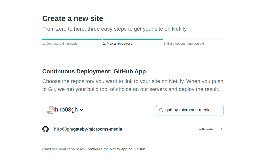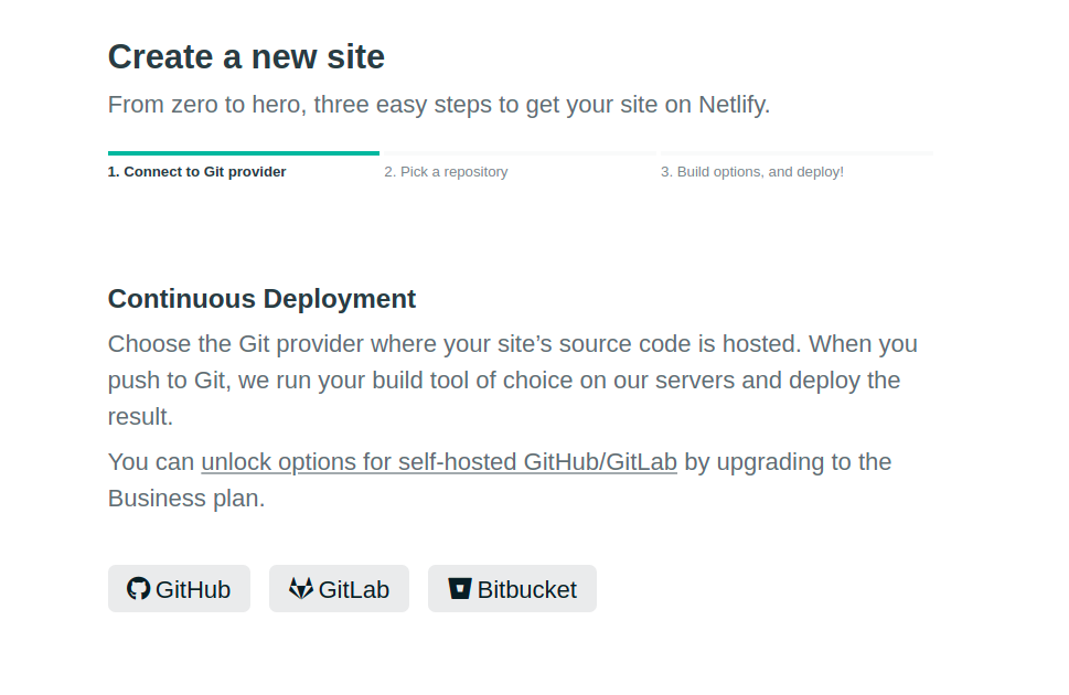 Netilfyにログイン後、New site from Gitをクリックしましょう。Create a new siteからGItHubを連携します。