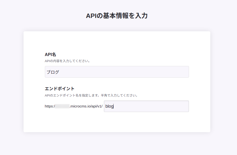 次にブログ用のAPIを作成します。API名にブログ、エンドポイントにblogを入力してください。