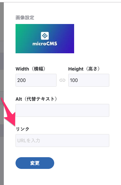 リッチエディタ内に配置した画像をクリックし、リンク項目に遷移先URLを入力してください。