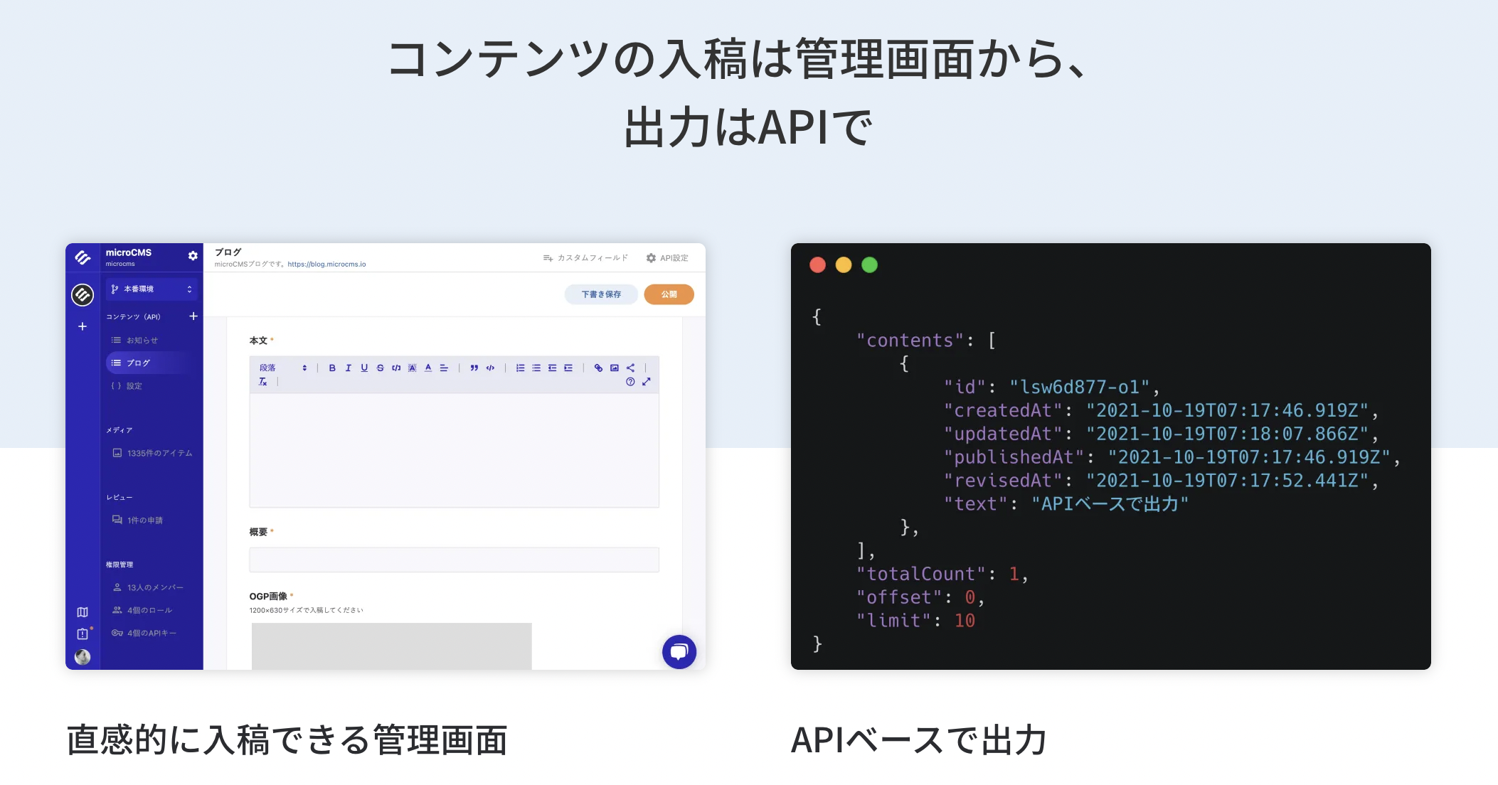 本記事では日本製のヘッドレスCMSであるmicroCMSを例に、実際の画面を交えつつヘッドレスCMSの特徴を解説していきます。