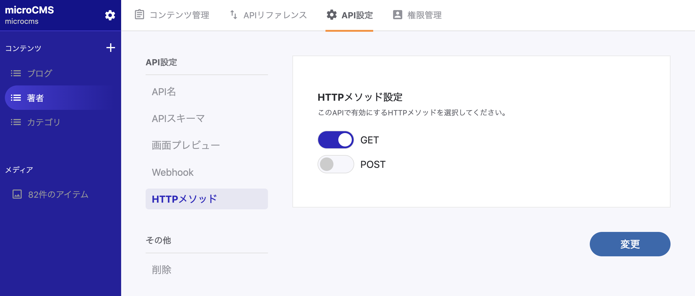 それぞれのAPI毎に設定ができ、GET / POSTそれぞれの有効状態を変更できます。
