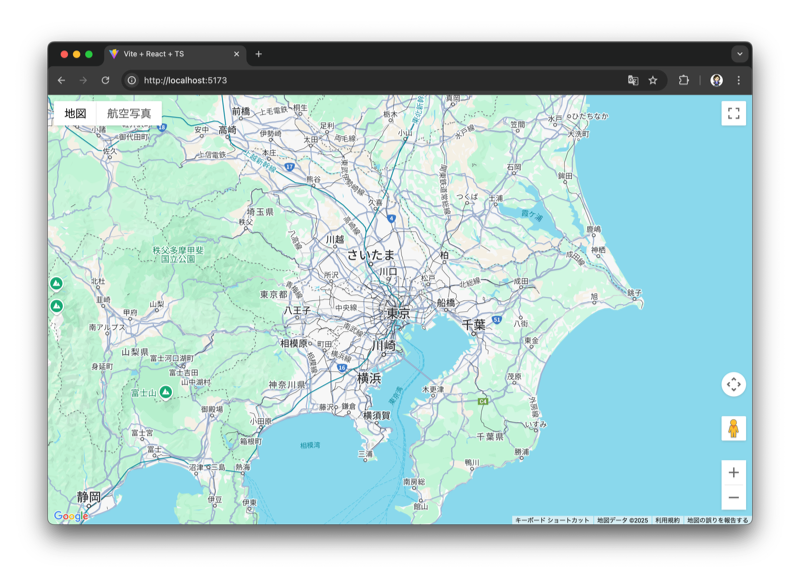 まずは地図ページの実装です。ここではVite + Reactのプロジェクトを新規に作成して進めていきます。