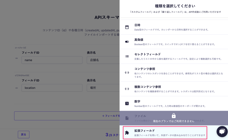 そしてその地図ページを拡張フィールドでmicroCMSと連携させます。