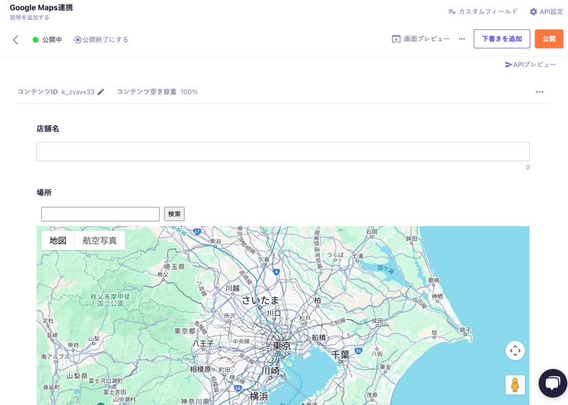 これでmicroCMSとGoogle Mapsが連携でき、「地図フィールド」を自作できました。