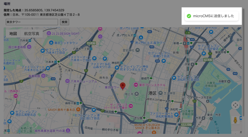 マップで選んだ座標や住所がmicroCMSのAPIから取得できるようになります。