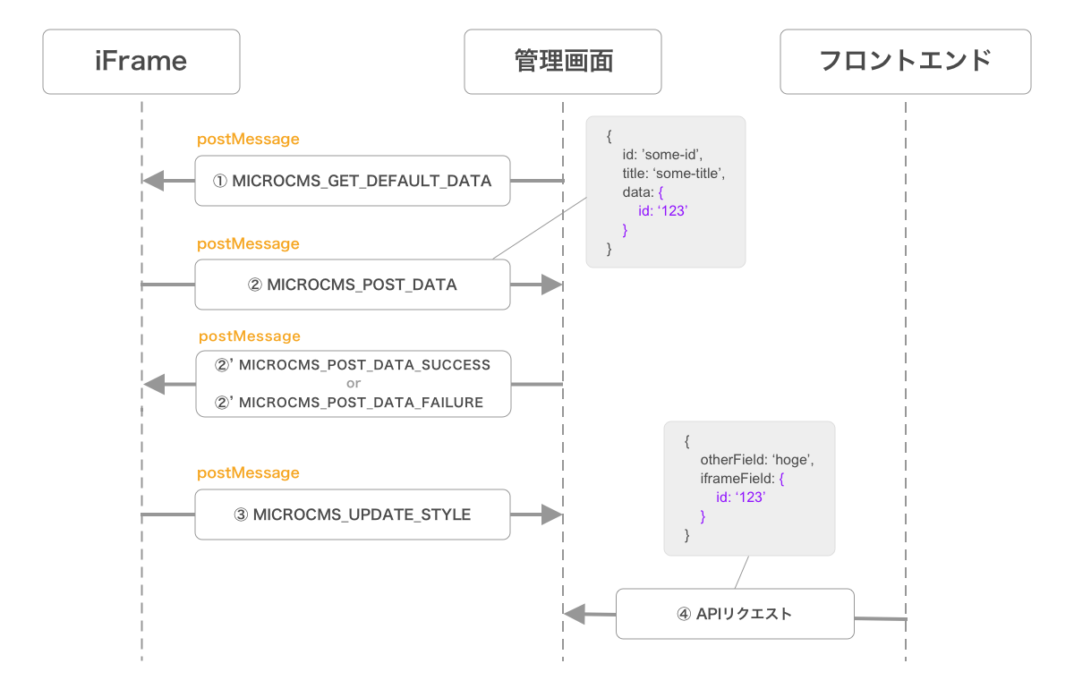 拡張フィールド連携では、iframeとmicroCMS管理画面の間で window.postMessage を使って値のやり取りを行います。