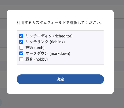 前項と合わせて作成されたカスタムフィールドは以下の通りです。