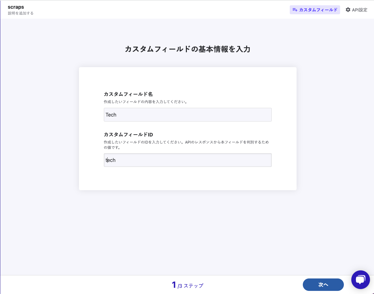 先ほどと同様にカスタムフィールドを作成していきます。ここでは