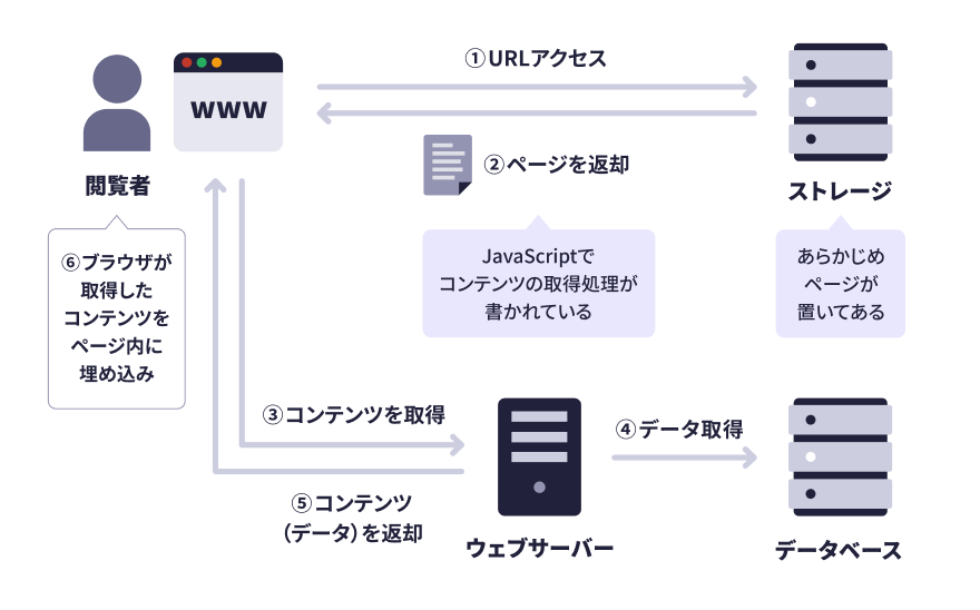 既存の方式の場合、アクセスの度にウェブサーバーが毎回処理を行う必要があるため、仮にウェブサーバーが停止してしまうと利用者にページを提供できなくなってしまいます。
