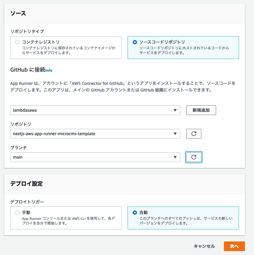 今回は AWS 上で Next.js を動かすために App Runner を使用します。