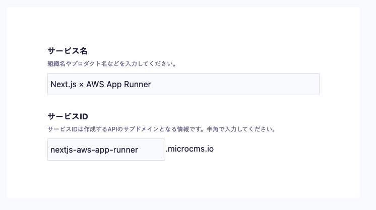まずは https://app.microcms.io/create-service にアクセスして microCMS 上にサービスを作成します。
