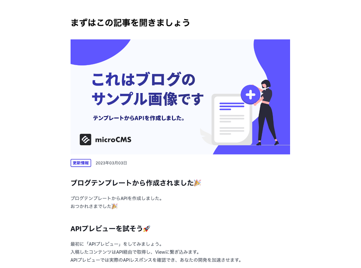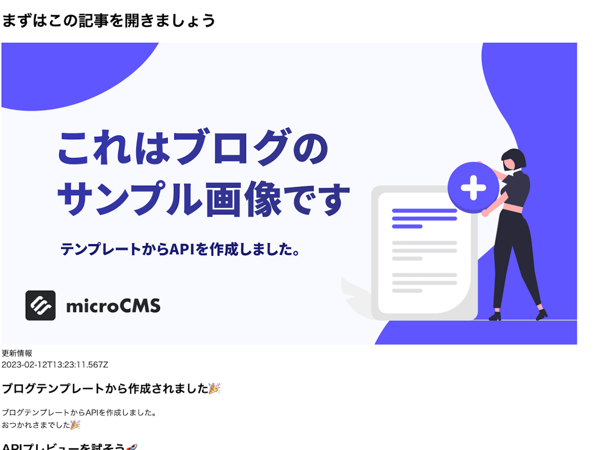 microCMSでAPIを用意します。今回はmicroCMSのブログテンプレートを利用して進めていきます。