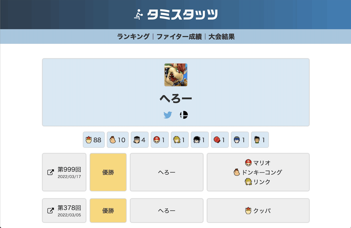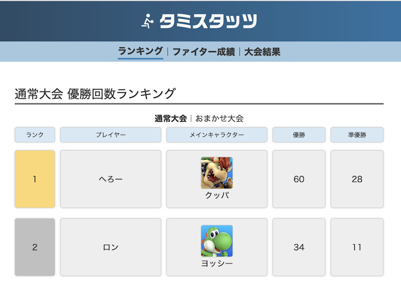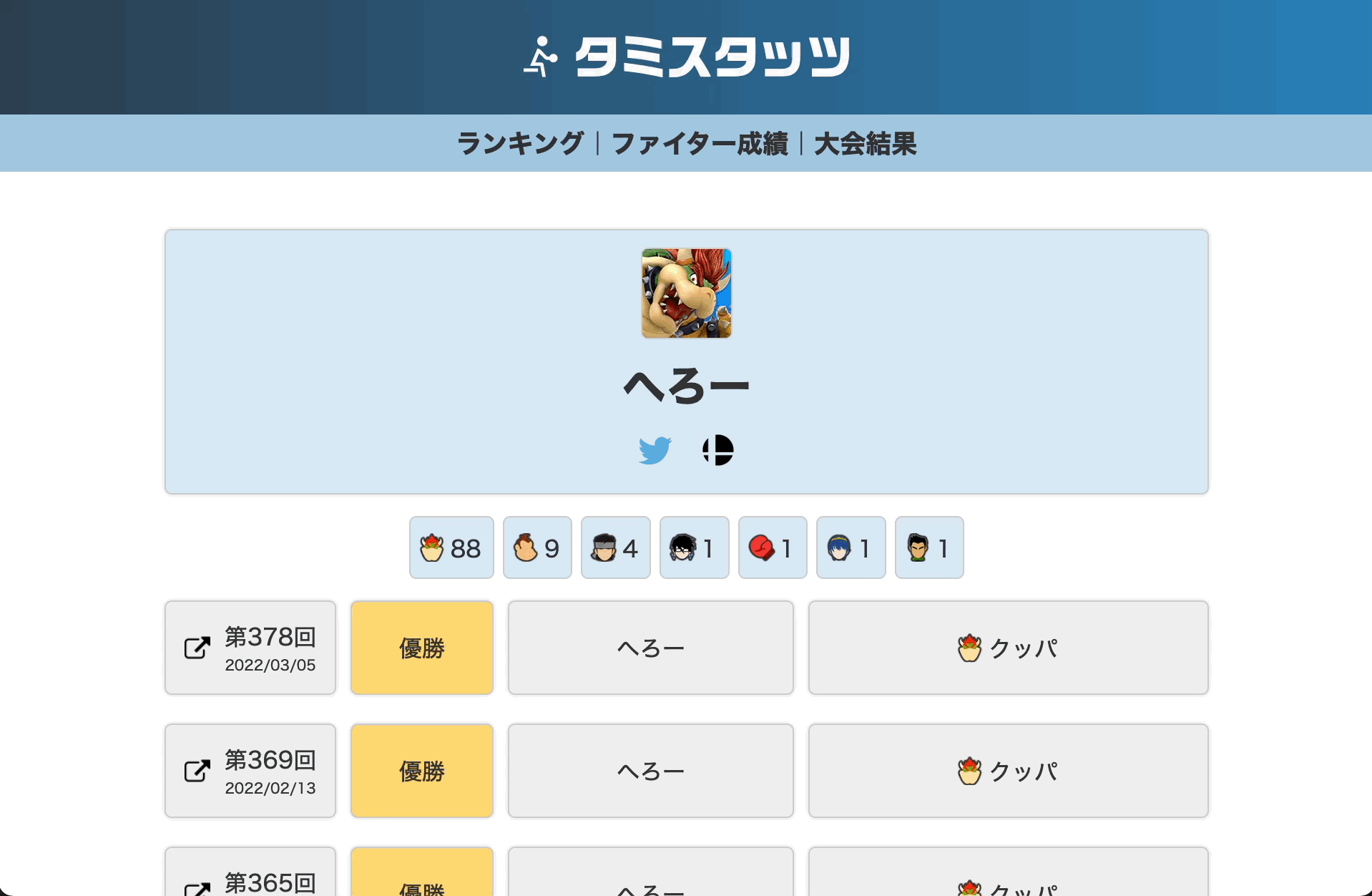 タミスタッツは、大人気格闘ゲーム「大乱闘スマッシュブラザーズシリーズ」のオンライン大会である「タミスマ」の結果をまとめたサイトです。アーキテクチャはNext.js + microCMS + Vercelで、SGを行なっています。