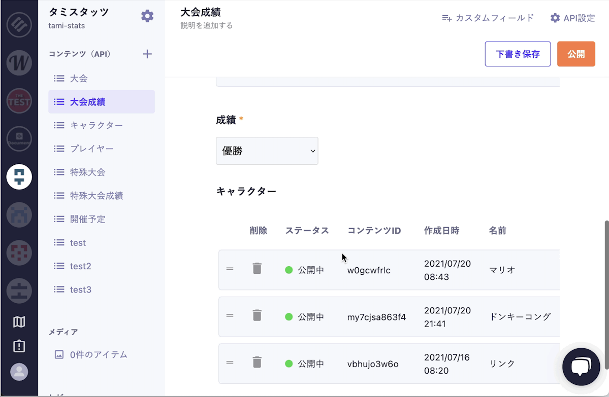 タミスマは2~3日に1回ペースで行われているため、継続的にデータ更新を行う必要があり、microCMSを使って管理を行なっています。