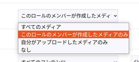 そして、読み取り -> メディアからこのロールのメンバーが作成したメディアのみを選択して、右上の作成をクリックしてください。