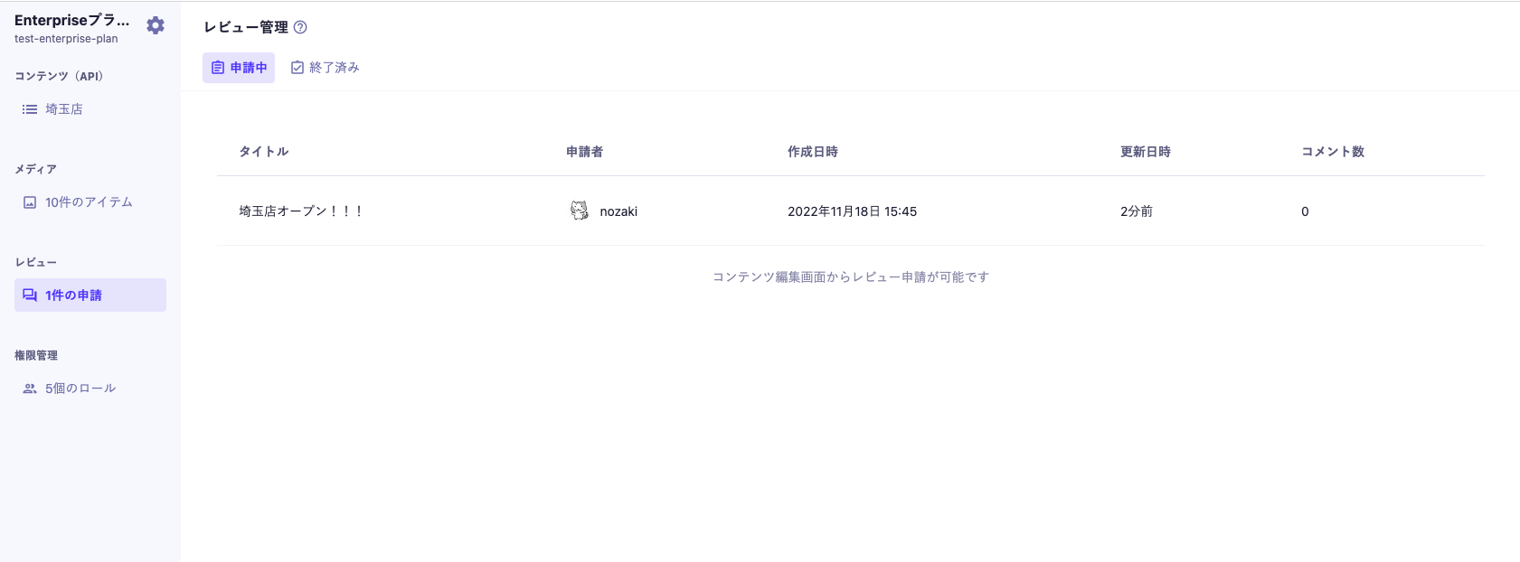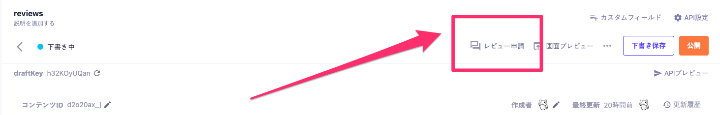 コンテンツ編集画面の「レビュー申請」メニューの表示に制限をかけることができます。