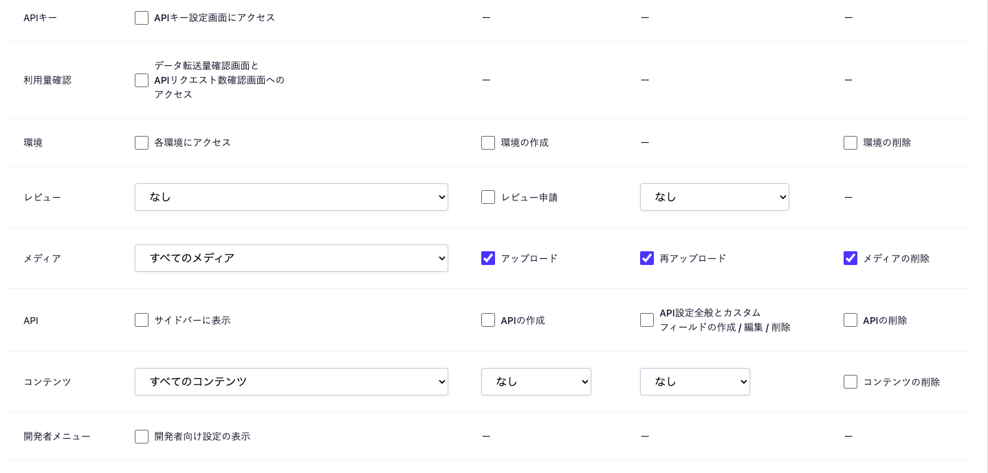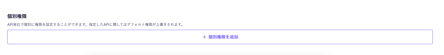ロール機能では、APIごとにデフォルト権限を上書きして設定できる「個別権限」を設定できます。