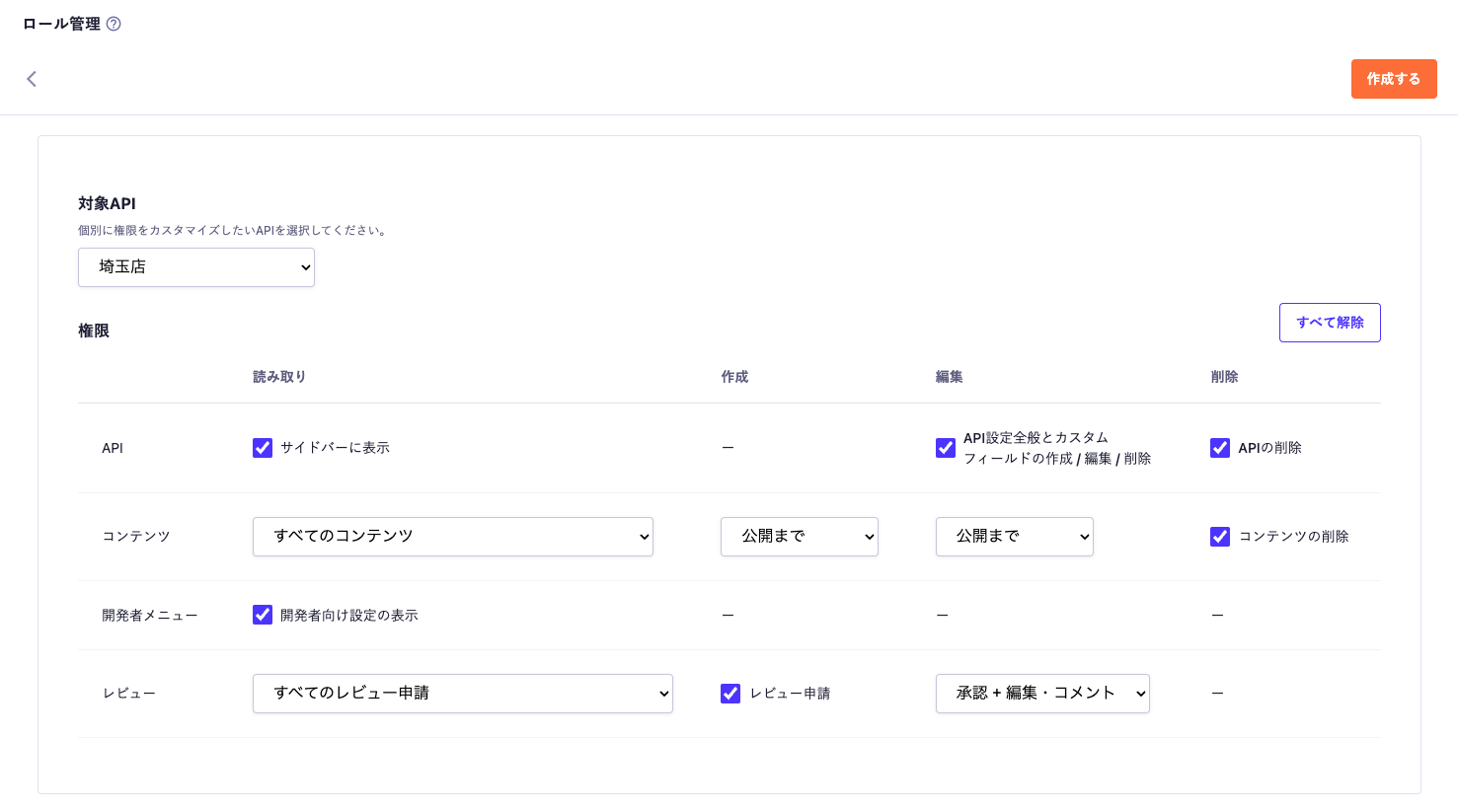 さらに権限を絞った「埼玉店担当者」のようなロールを作成することでAPIごとのワークフローを組むことも可能になります。
