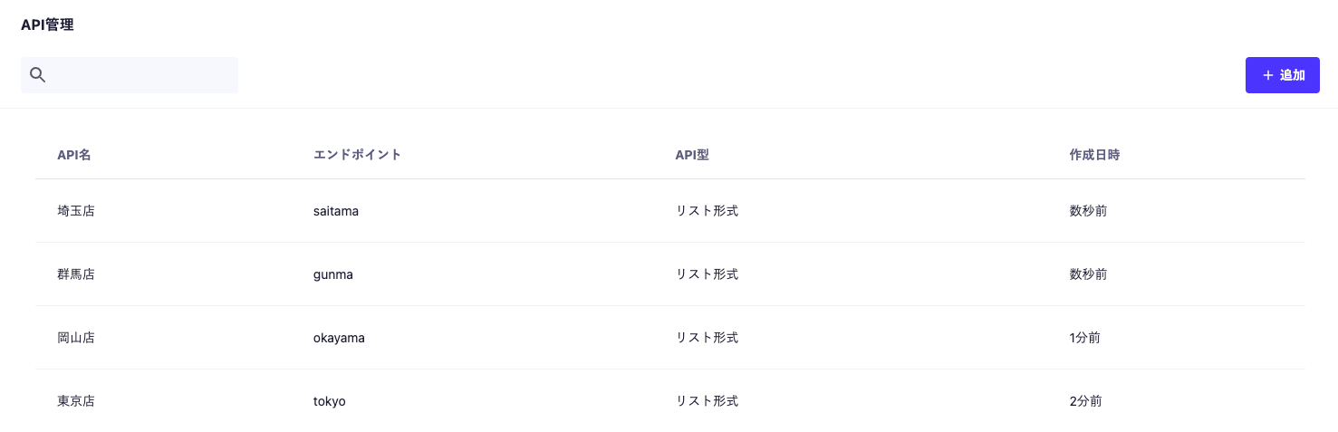 ここでは、いつくか店舗が存在するお店のブログサービスを運用していると仮定して、以下のようにお店ごとにAPIを作成しました。