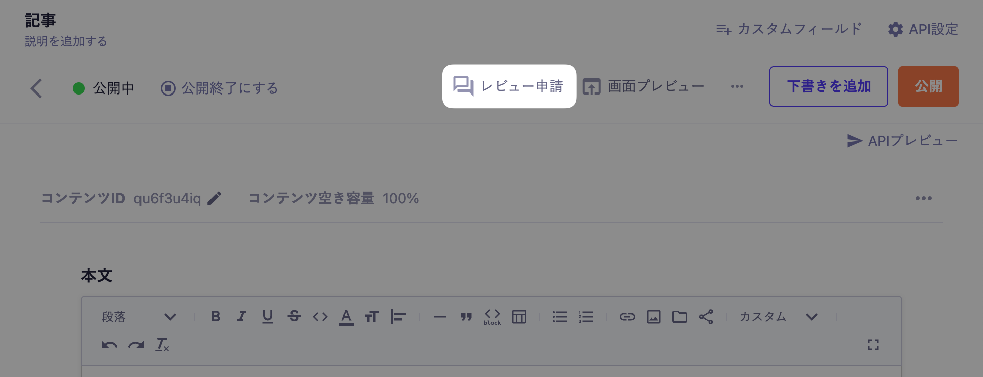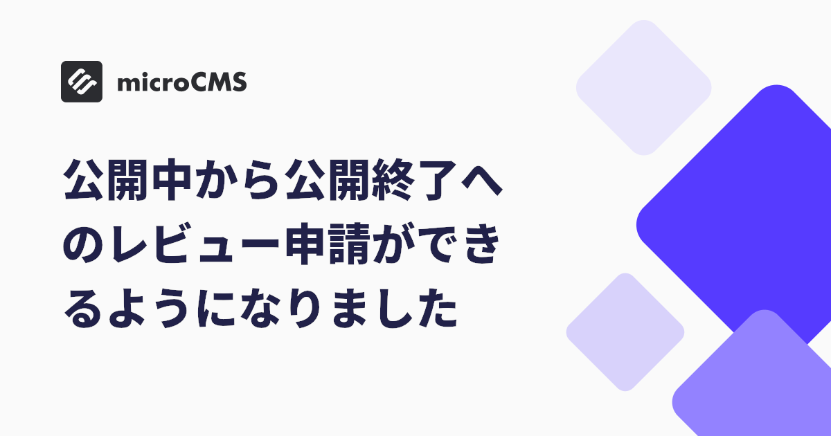 これまでは、「下書き中」または「公開中かつ下書き中」のコンテンツを「公開中」にする際に、レビュー申請を行うことができましたが、この度、公開中のコンテンツを公開終了する際にも、レビュー申請ができるようになりました。