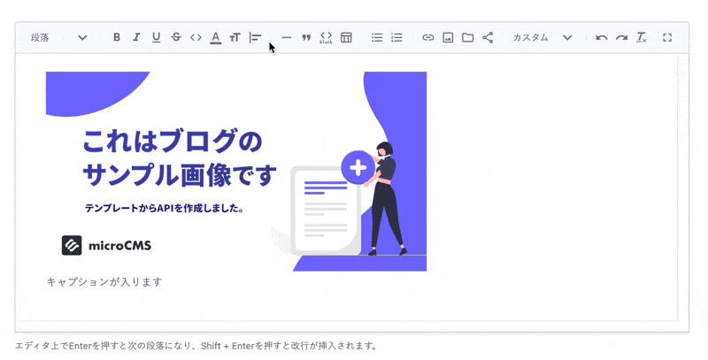 このたび、リッチエディタのツールバーから画像の「横位置(左・中央・右)」を選択して揃えられる機能をご利用いただけるようになりました。キャプションも画像と同じ位置に揃います。