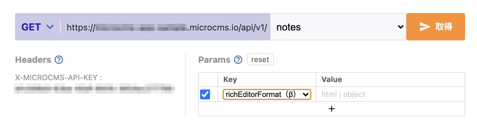 APIリクエスト時のパラメータに richEditorFormat を指定することでご利用いただけます。