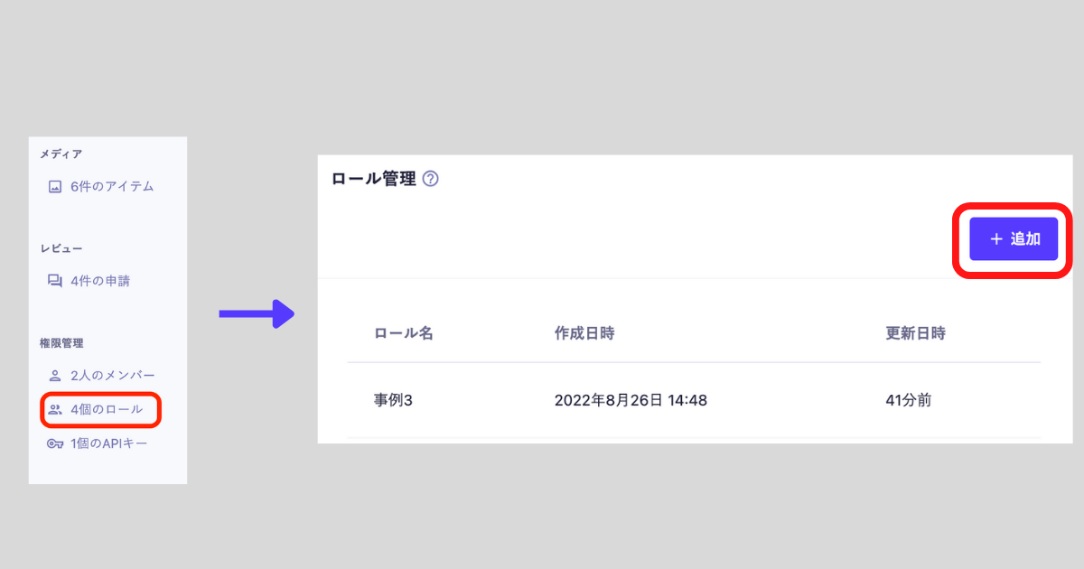 サイドバーのロールメニューより、追加ボタンをクリックしましょう。