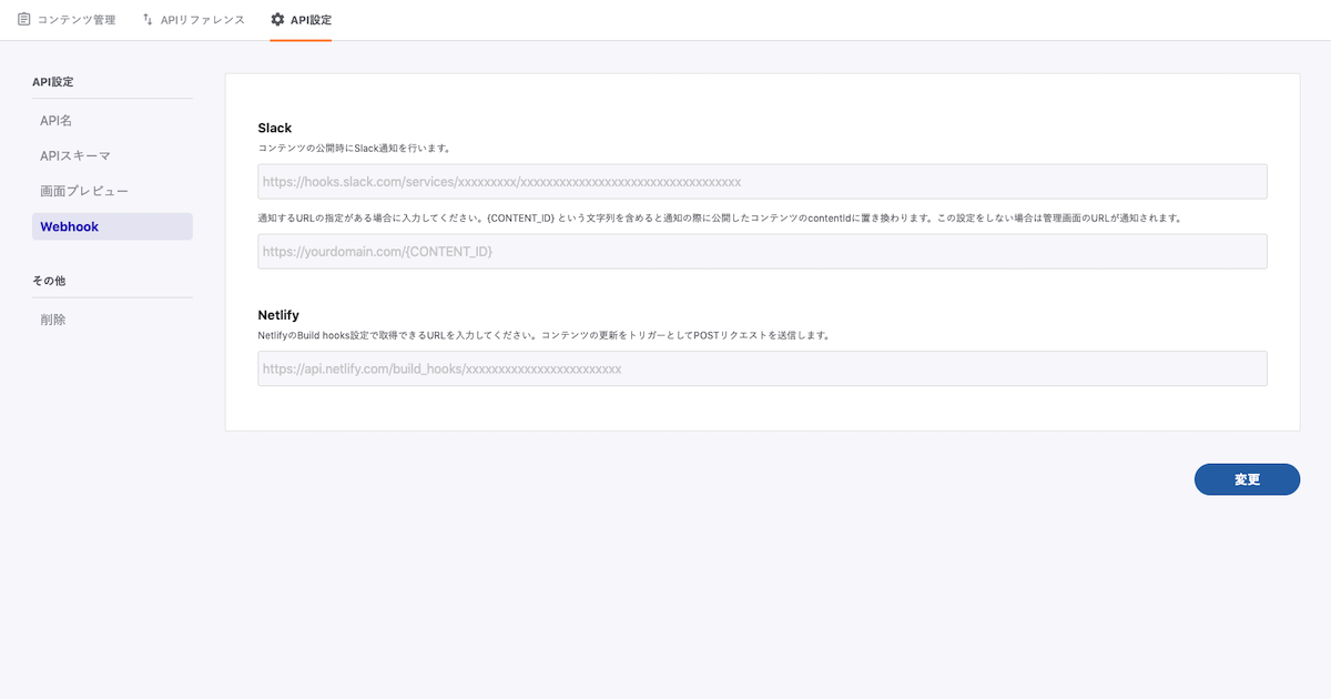 コンテンツの公開時にSlackのWebhookを使って通知する機能は以前より実装されていましたが、今回はそれに対する追加機能となります。