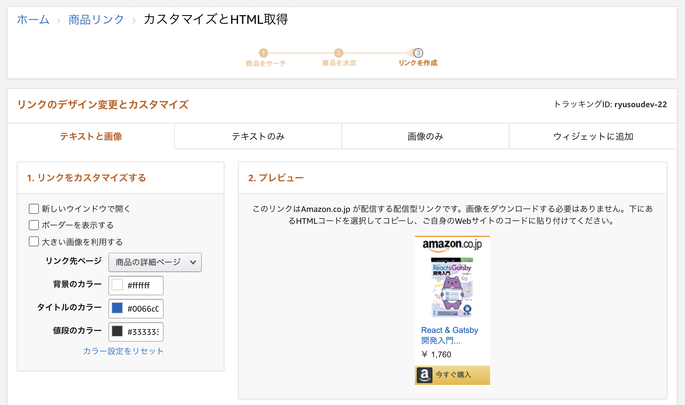 - 画像のみ→画像リンクを生成します。商品のタイトル・説明などがつけられないのが欠点です。