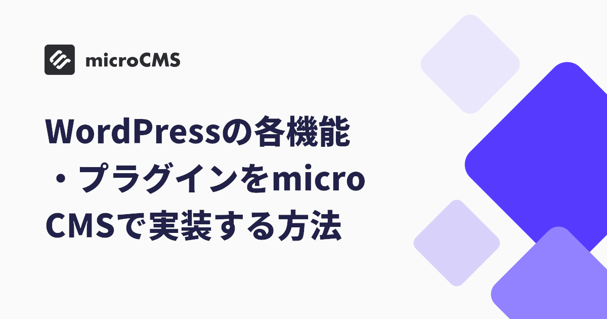 WordPressでよく使われている機能が、microCMSではどのように実装できるのかをまとめました。